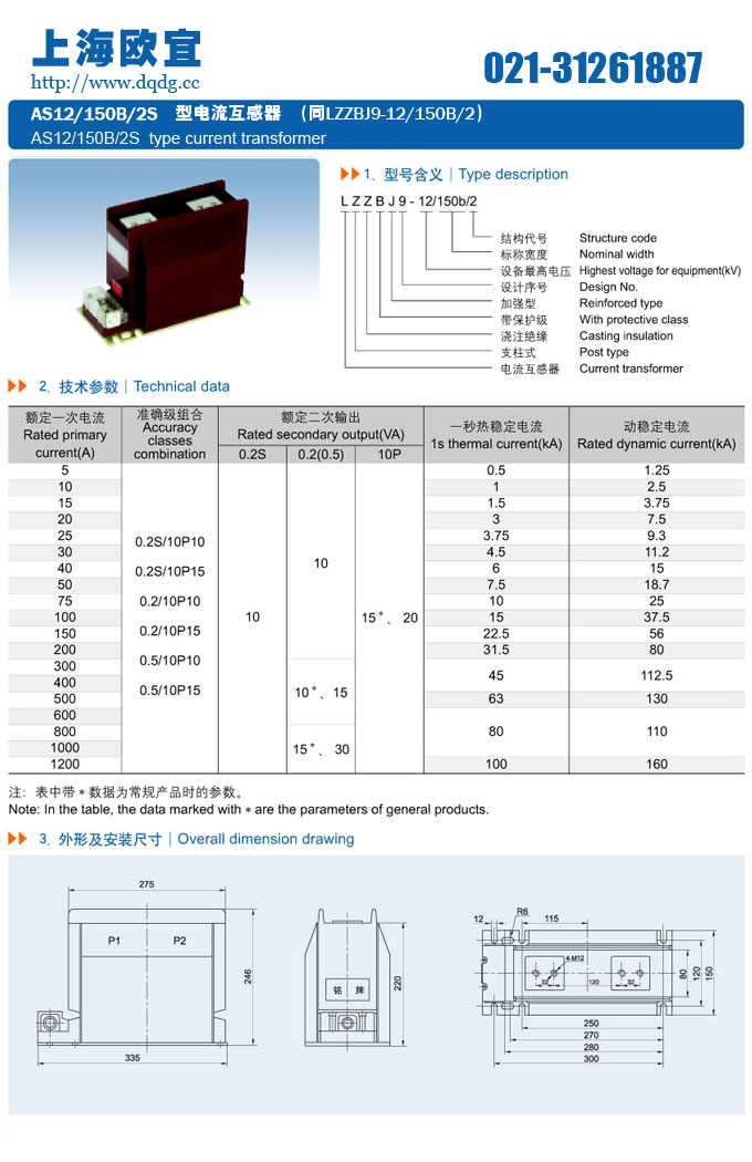 產(chǎn)品名稱:AS12/150B/2S電流互感器