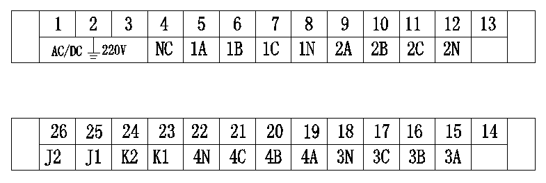 將單相調(diào)壓器調(diào)到0V位置,輸出端接到某繞組與相應(yīng)的N端(如1A與1N),接通保護器的AC220V電源,此時,面板上的工作指示燈(綠色)每隔一秒閃爍一次,而其它的指示燈均應(yīng)不亮,這表示各路保護電路均處于正常的復(fù)位狀態(tài)。假如有通道紅色指示燈亮,說明相應(yīng)部分保護狀態(tài)未正常復(fù)位,需要按復(fù)位按鈕予以復(fù)位。之后,檢測動作電壓是否正常,方法是:緩慢地調(diào)節(jié)調(diào)壓器,使調(diào)壓器輸出電壓逐漸升高,當(dāng)燈泡亮?xí)r,此刻調(diào)壓器輸出電壓數(shù)值即為保護動作啟動電壓。之后降低調(diào)壓器的輸出電壓,燈泡也不會熄滅,這說明保持功能正常。 依此方法分別檢測所有各路繞組,如果均符合技術(shù)指標(biāo),則檢測合格。四、訂貨須知