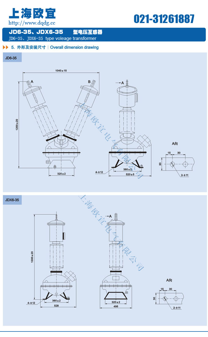 60/60/1002×500 四、JDX6-35電壓互感器外形及安裝尺寸