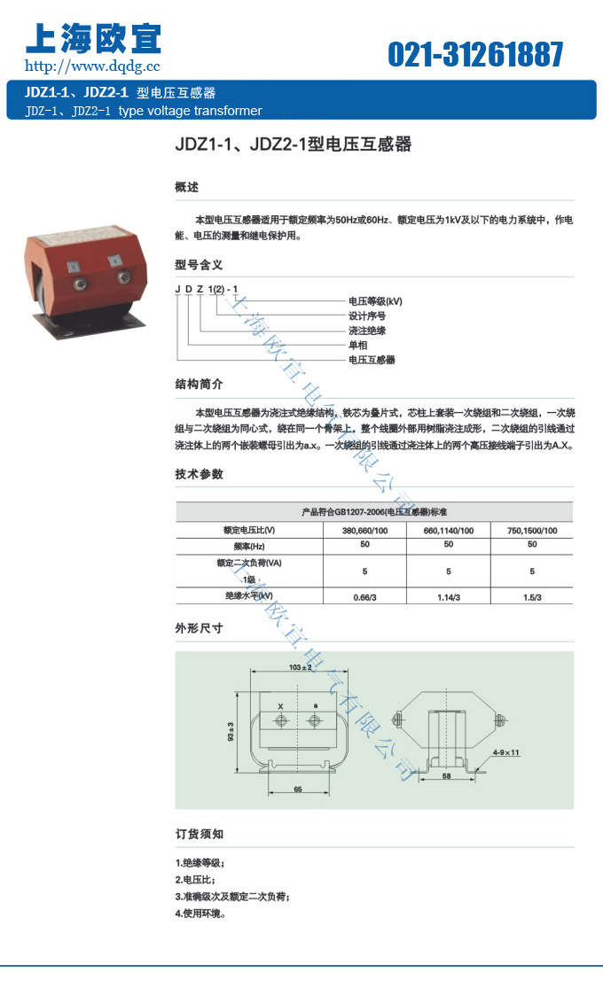 JDZ1-1,JDZ2-1電壓互感器為單相雙繞組繞注式戶內(nèi)型產(chǎn)品,適用于50Hz、380V電路中,供測(cè)量電壓、電能和功率以及繼電保護(hù),自動(dòng)裝置用。
