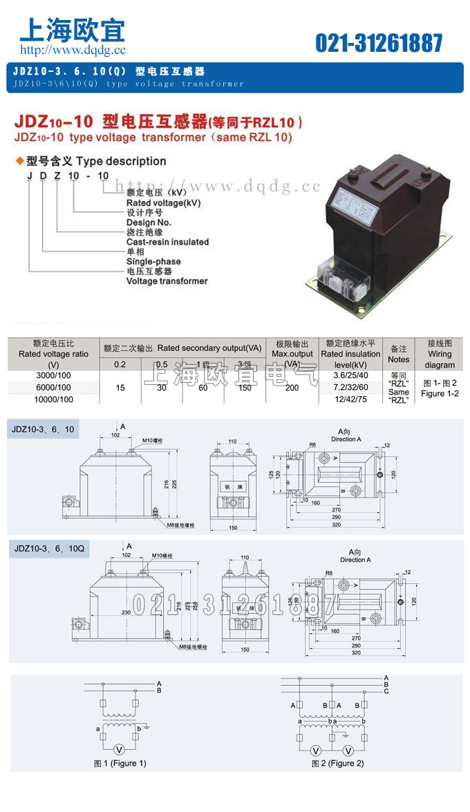 聲明:這里是產(chǎn)品的接線圖、變比、參數(shù)、精度、準(zhǔn)確級(jí)、保護(hù)級(jí)、作用原理、外形尺寸等詳細(xì)參數(shù)頁面。本頁JDZ10-10電壓互感器的信息僅供參考,如有改動(dòng)不另行通知。訂購前請(qǐng)來電咨詢,我們有專業(yè)人士為您選型。 另外可根據(jù)客戶需求,訂制非標(biāo)產(chǎn)品。