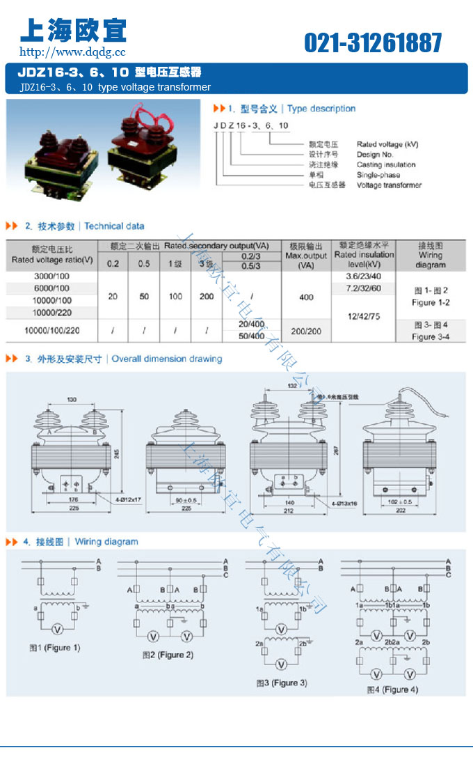 聲明:這里是產(chǎn)品的接線圖、變比、參數(shù)、精度、準確級、保護級、作用原理、外形尺寸等詳細參數(shù)頁面。本頁JDZ16-6,JDZ16-3電壓互感器的信息僅供參考,如有改動不另行通知。訂購前請來電咨詢,我們有專業(yè)人士為您選型。 另外可根據(jù)客戶需求,訂制非標產(chǎn)品。