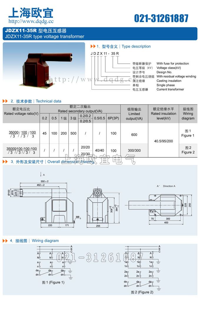 聲明:這里是產(chǎn)品的接線圖、變比、參數(shù)、精度、準(zhǔn)確級、保護級、作用原理、外形尺寸等詳細參數(shù)頁面。本頁JDZX11-35R電壓互感器的信息僅供參考,如有改動不另行通知。訂購前請來電咨詢,我們有專業(yè)人士為您選型。 另外可根據(jù)客戶需求,訂制非標(biāo)產(chǎn)品。