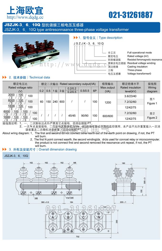 聲明:這里是產(chǎn)品的接線圖、變比、參數(shù)、精度、準(zhǔn)確級(jí)、保護(hù)級(jí)、作用原理、外形尺寸等詳細(xì)參數(shù)頁(yè)面。本頁(yè)JSZJK-10Q電壓互感器的信息僅供參考,如有改動(dòng)不另行通知。訂購(gòu)前請(qǐng)來(lái)電咨詢,我們有專(zhuān)業(yè)人士為您選型。 另外可根據(jù)客戶需求,訂制非標(biāo)產(chǎn)品。