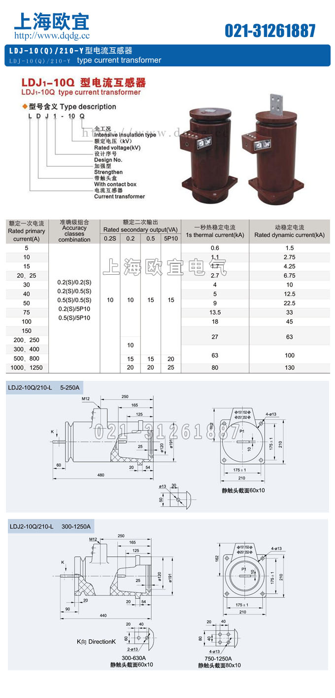 產(chǎn)品名稱:LDJ2-10Q/210-L,LDJ2-10/210-L電流互感器