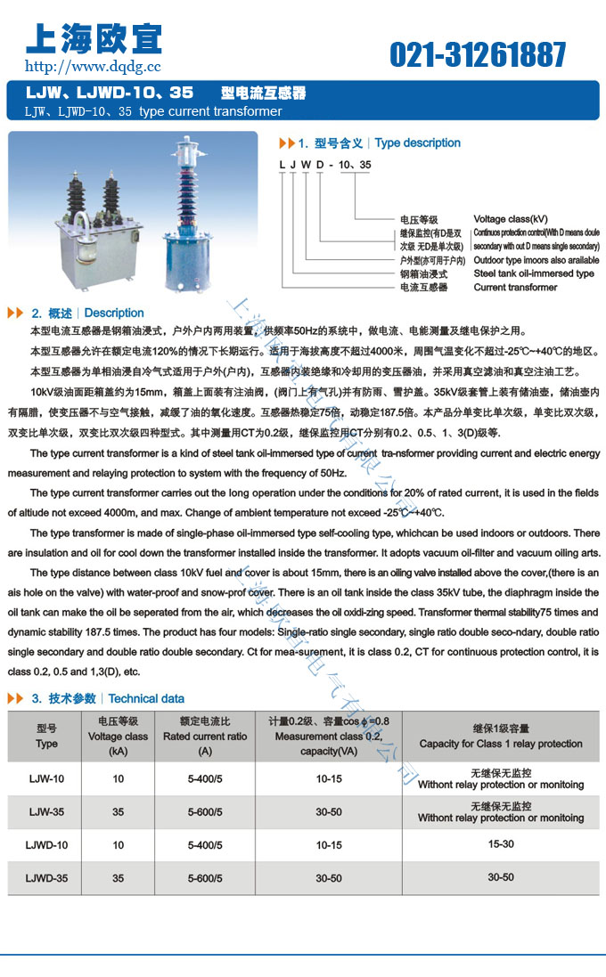 LJW-35、LJWD-35電流互感器為油紙絕緣、戶外型產(chǎn)品,適用于額定頻率50Hz或60Hz、額定電壓為35kV的電力系統(tǒng)中,作電能計(jì)量、電流測(cè)量和繼電保護(hù)用。