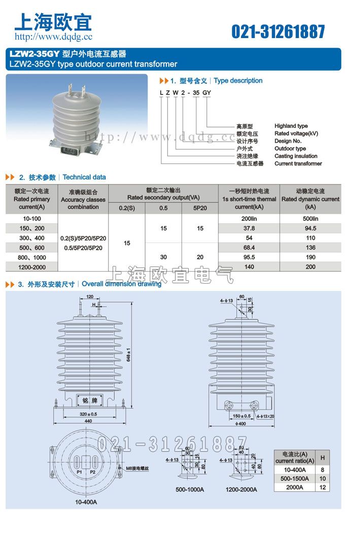 0.2/0.5/10P10/10P1015 20 30 50 20 50 30 5.6 14 30、40 7 17.5 50 7 17.5 75 14 35 100 150 25 63 200 300 40 100 400 500、600 45 100 750~1250 330 30 63 130 1500、2000 60 三、LZW2-35GY電流互感器型戶外電流互感器
