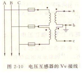 (2) 用兩臺(tái)單相互感器接成不完全星形,也稱V—V接線,用來(lái)測(cè)量各相間電壓,但不能測(cè)相對(duì)地電壓,廣泛應(yīng)用在20KV以下中性點(diǎn)不接地或經(jīng)消弧線圈接地的電網(wǎng)中。